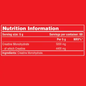Pure Creatine Monohydrate: Contains 100% creatine monohydrate without unnecessary additives, ensuring optimal purity and effectiveness.