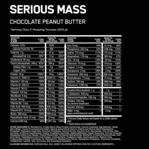Serious Mass is the ultimate in weight gain formulas. With 1,250 calories per serving and 50 grams of protein for muscle recovery support, this instantized powder makes the ideal post-workout and between meals shake for sizing up your goals. Serious Mass provides you with the tools you need to pack on the pounds and help you develop the physique you’ve always wanted.